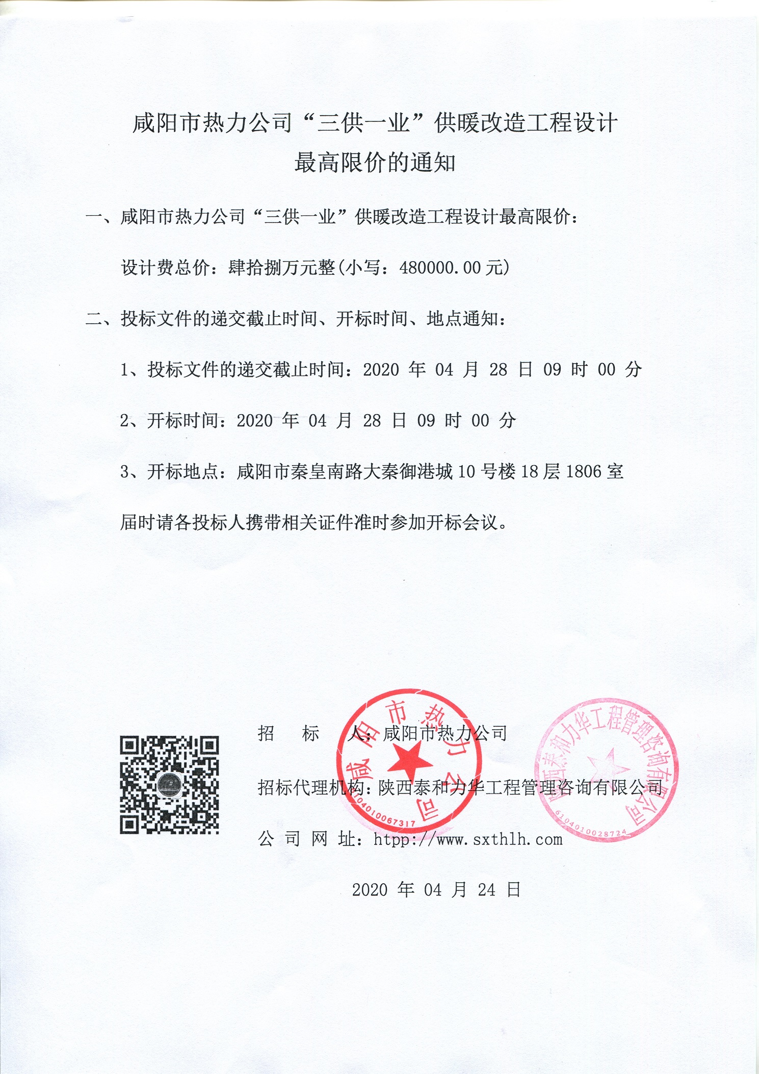 咸阳市热力公司“三供一业”供暖改造工程设计最高限价的通知