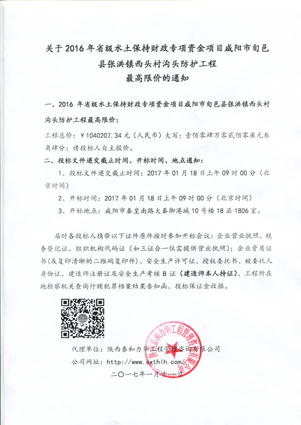 2016年省级水土保持财政专项资金项目咸阳市旬邑县张洪镇西头村沟头防护工程