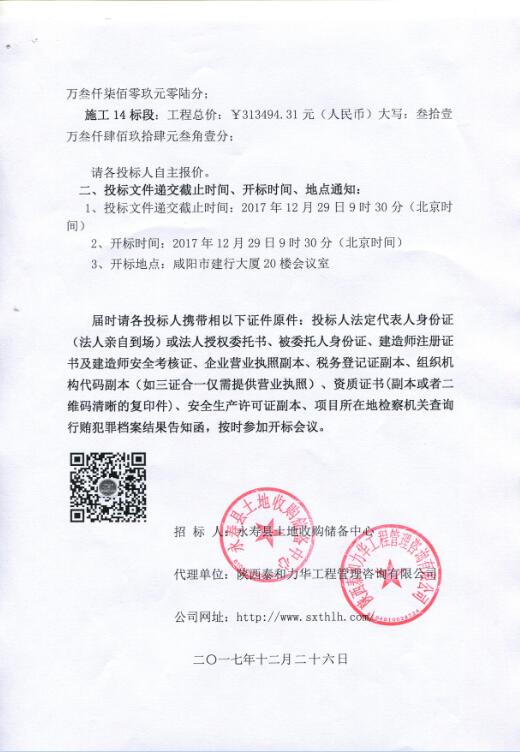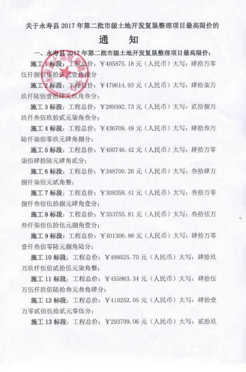 关于永寿县2017年第二批市级土地开发复垦整理项目最高限价的通知
