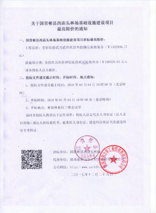 关于国营彬且西庙头林场基础设施建设项目最高限价的通知