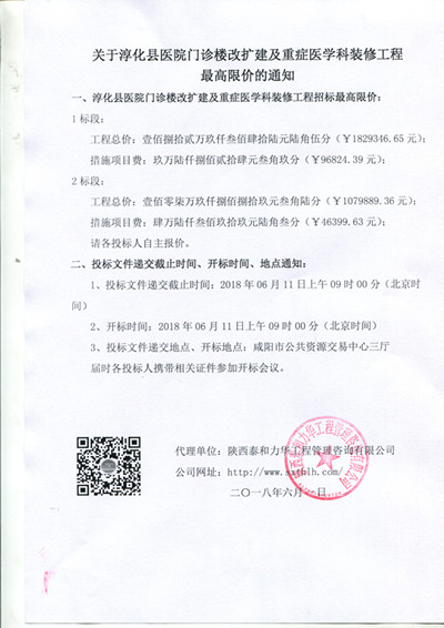 关于淳化县医院门诊楼改扩建及重症医学科装修工程最高限价的通知