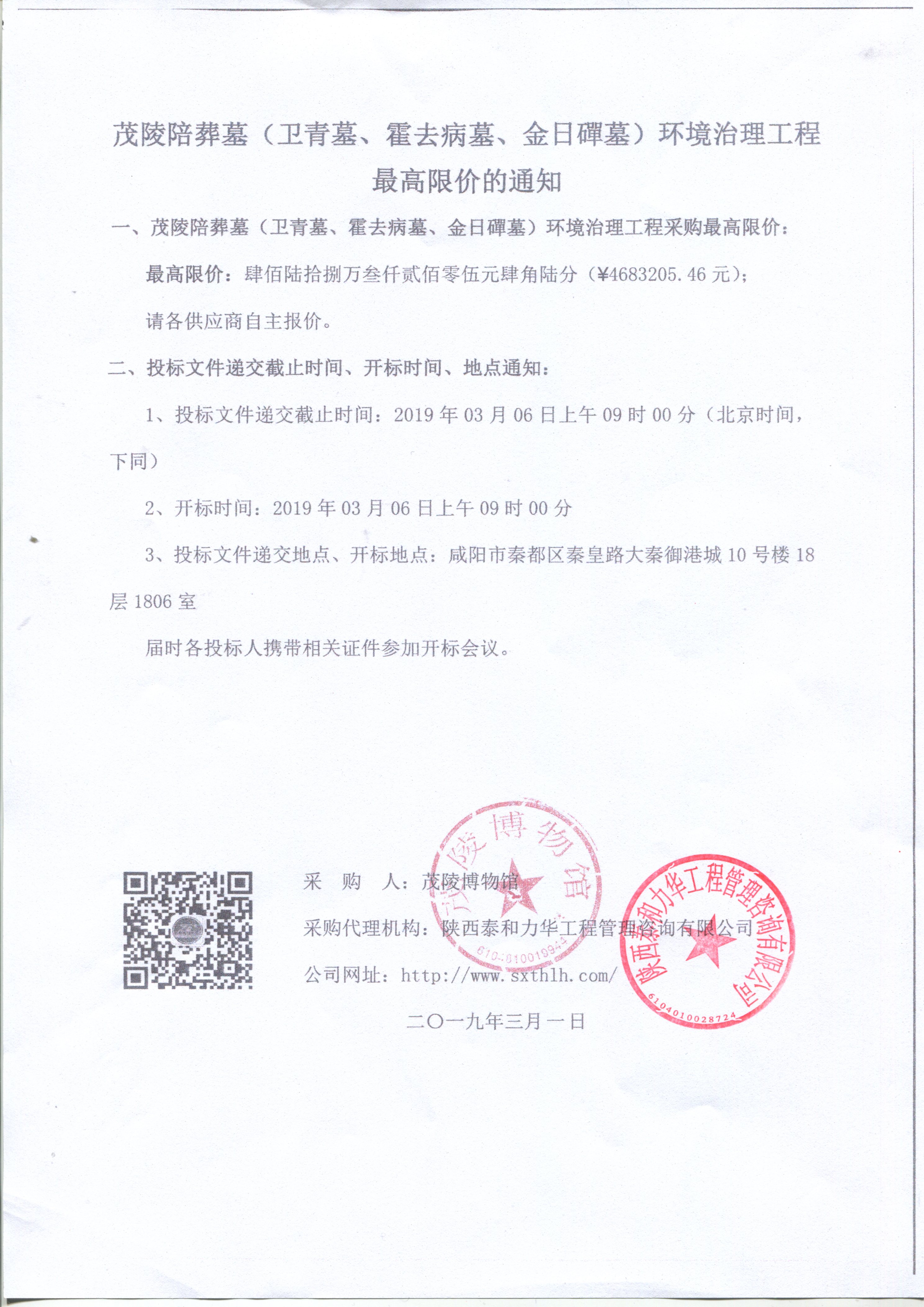 茂陵陪葬墓(卫青墓、霍去病墓、金日磾墓)环境治理工程最高限价的通知