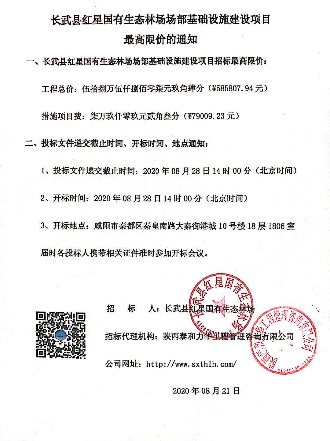 长武县红星国有生态林场场部基础设施建设项目最高限价的通知