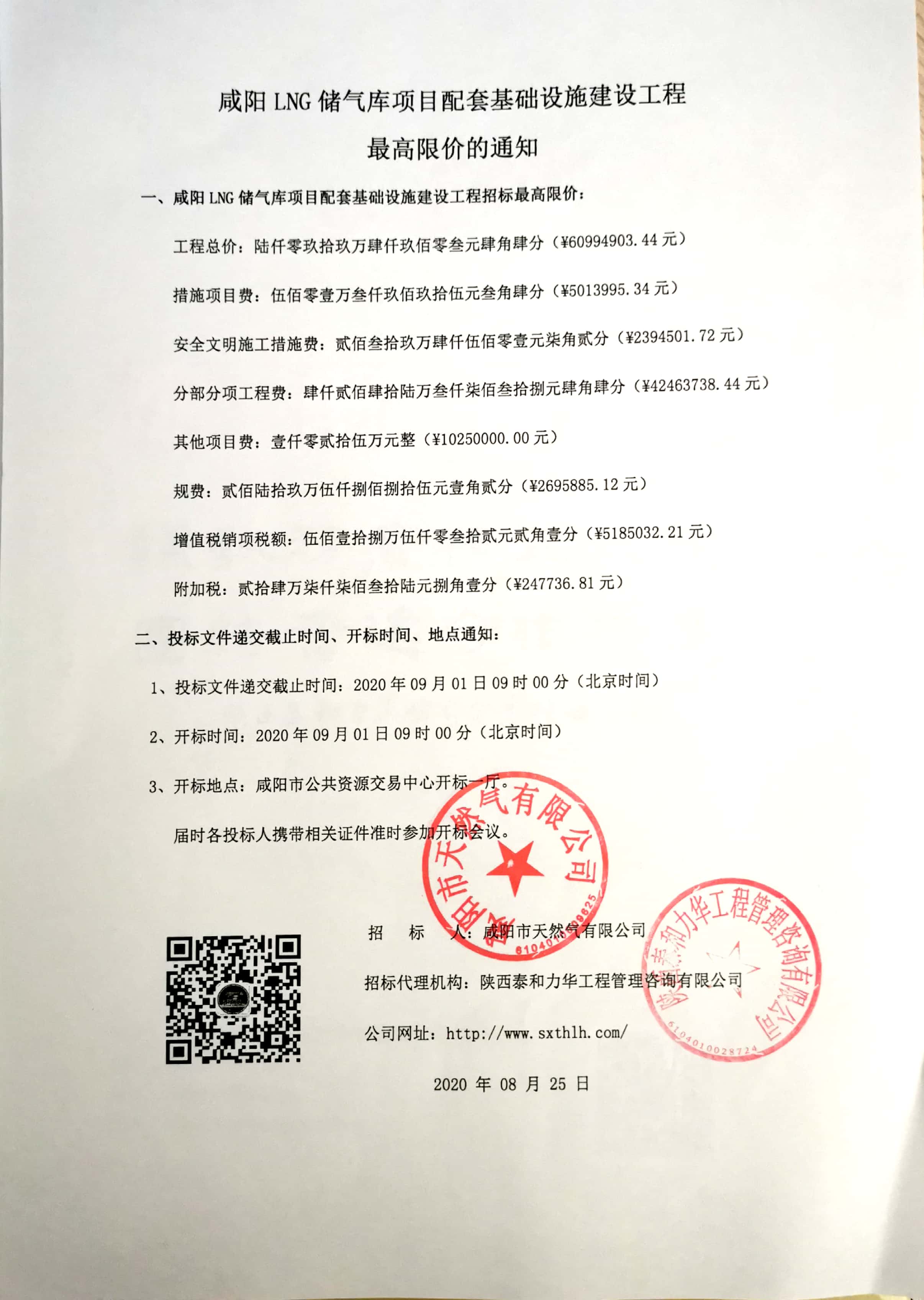 咸阳LNG储气库项目配套基础设施建设工程最高限价的通知