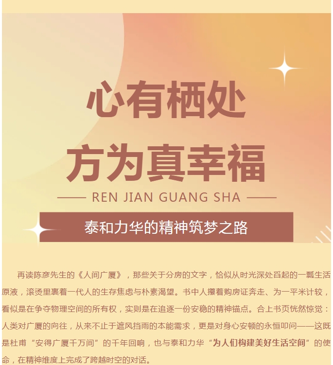 读《人间广厦》:心有栖处,方为真幸福——泰和力华的精神筑梦之路